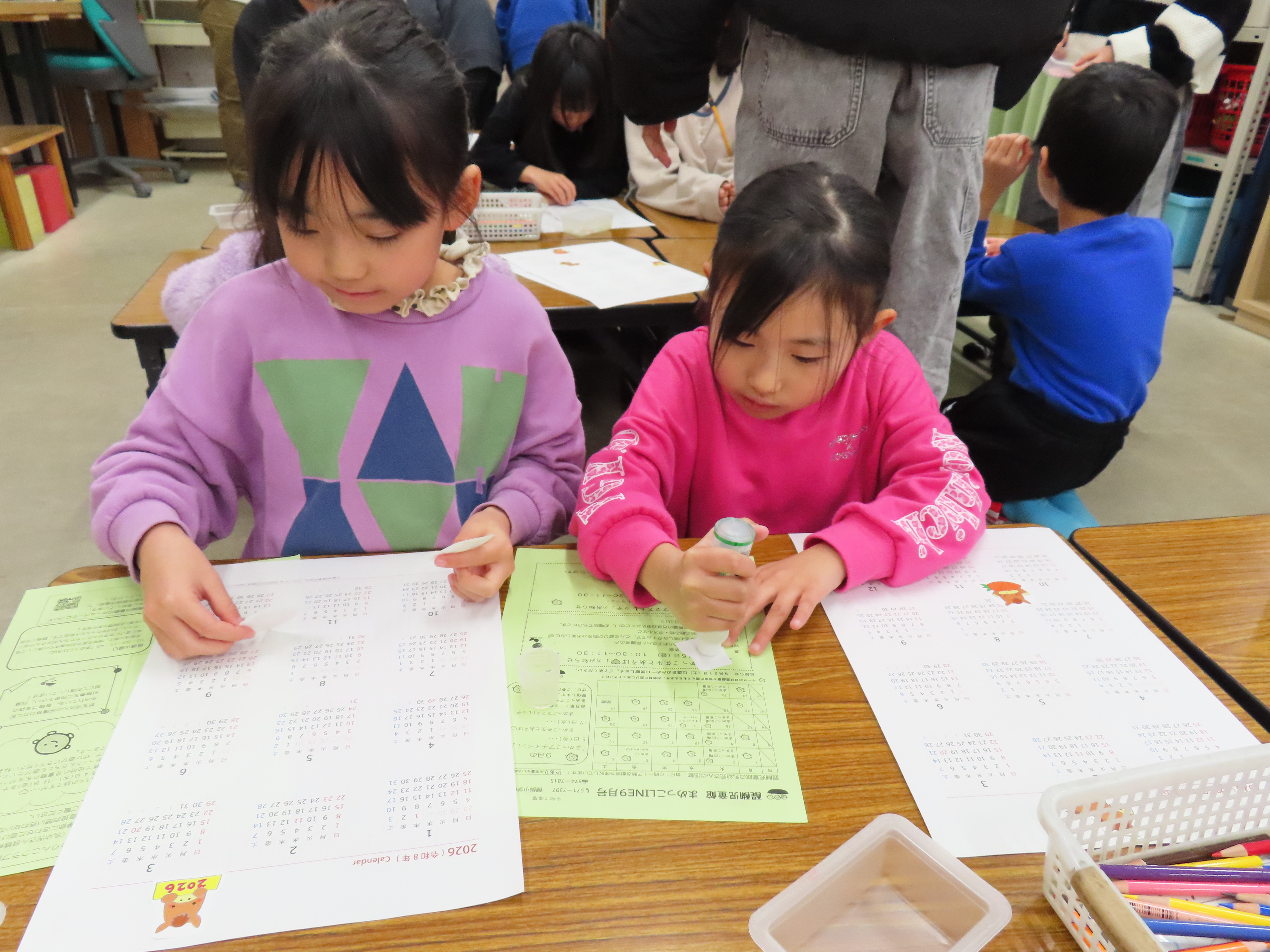 1月は、2026年のカレンダーづくりをしました。干支の「午」やオリジナルのイラストをかいて、裏には今年の目標を書きました。