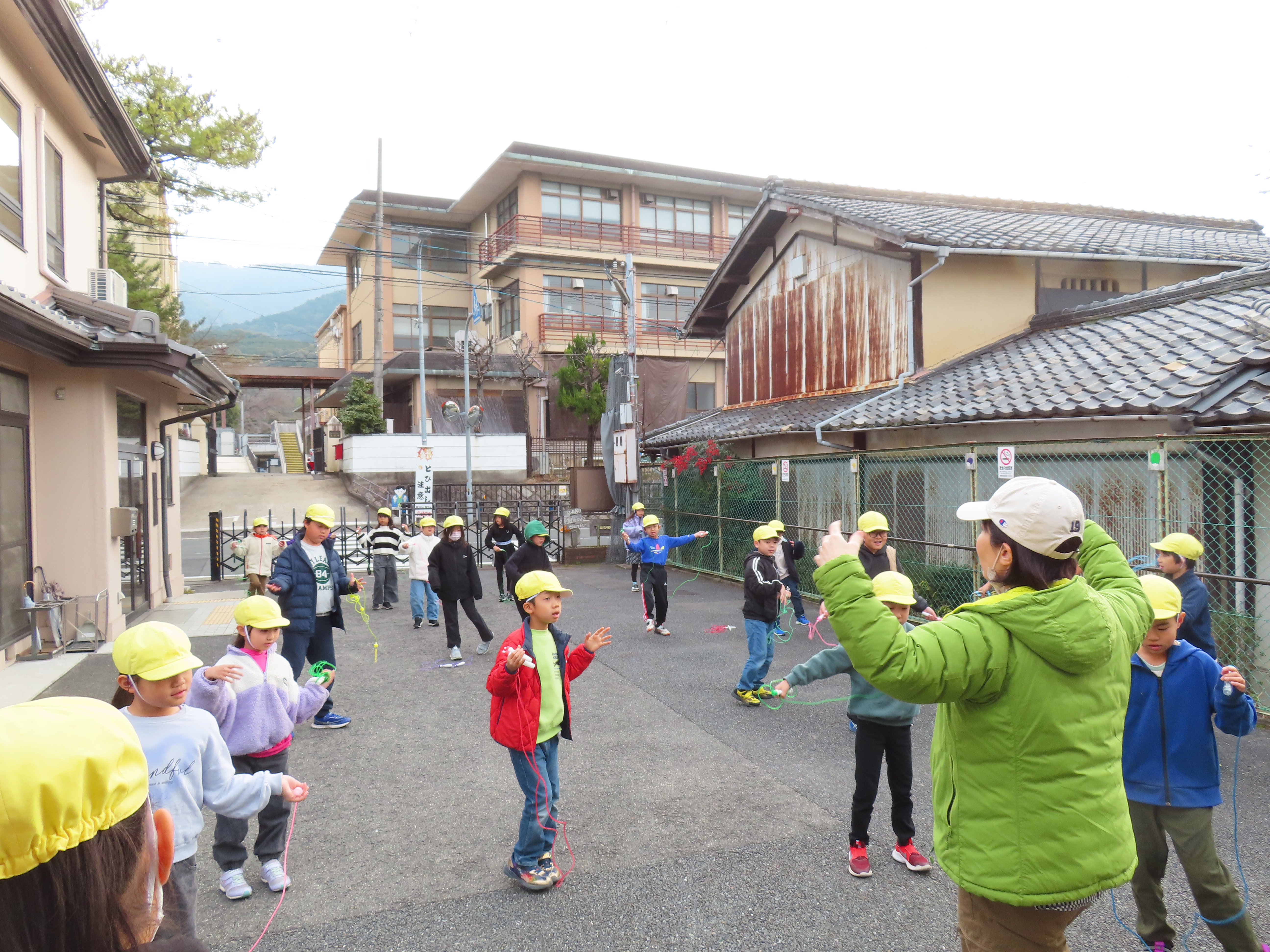 準備運動をし、前跳びの回数を増やしたり、二重とびや交差とびにチャレンジしています。寒いですが、すぐにぽかぽか体があたたまります!