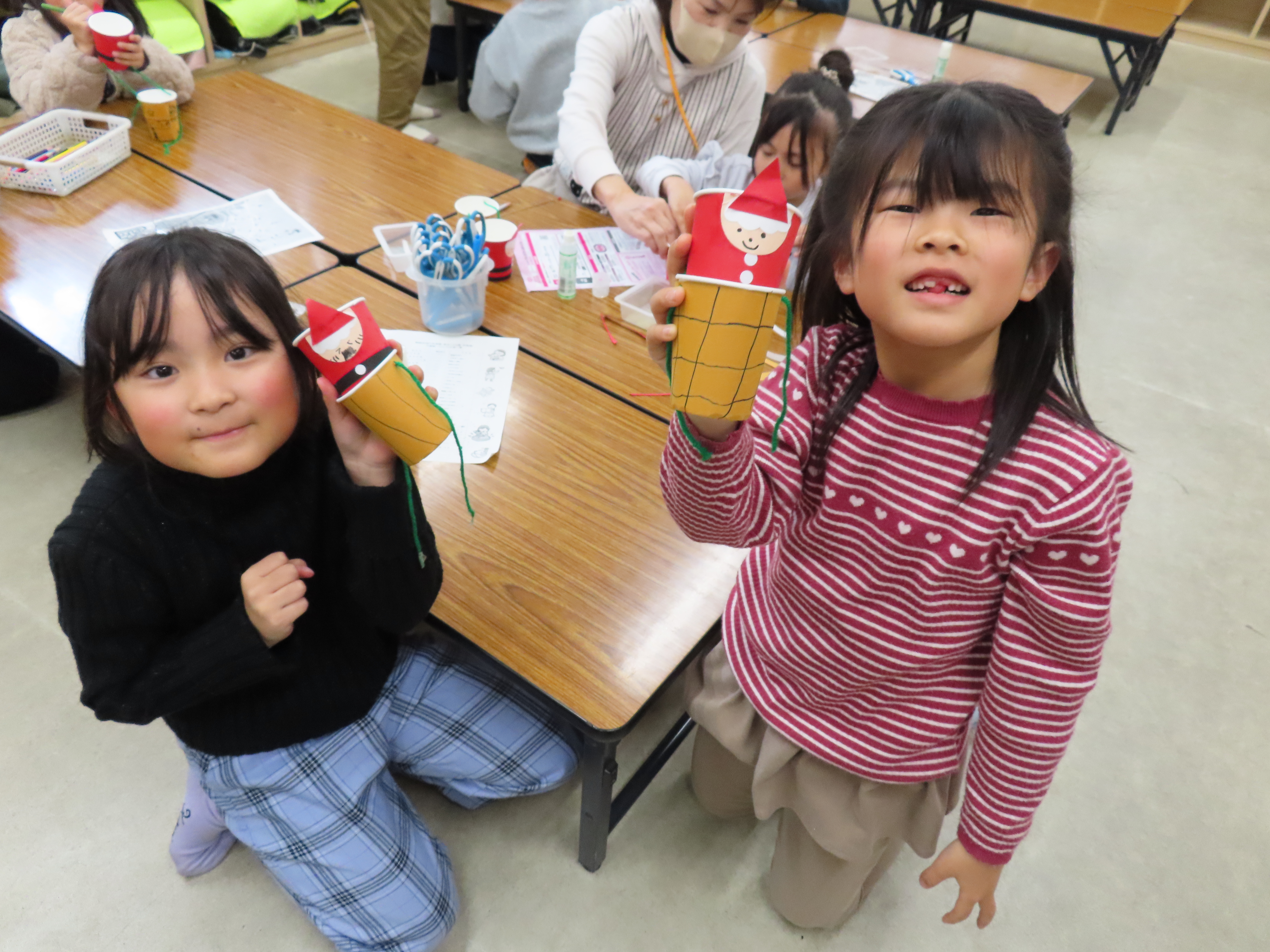 11月は、煙突からサンタさんが顔を出す仕掛けが楽しいクリスマス工作でした。