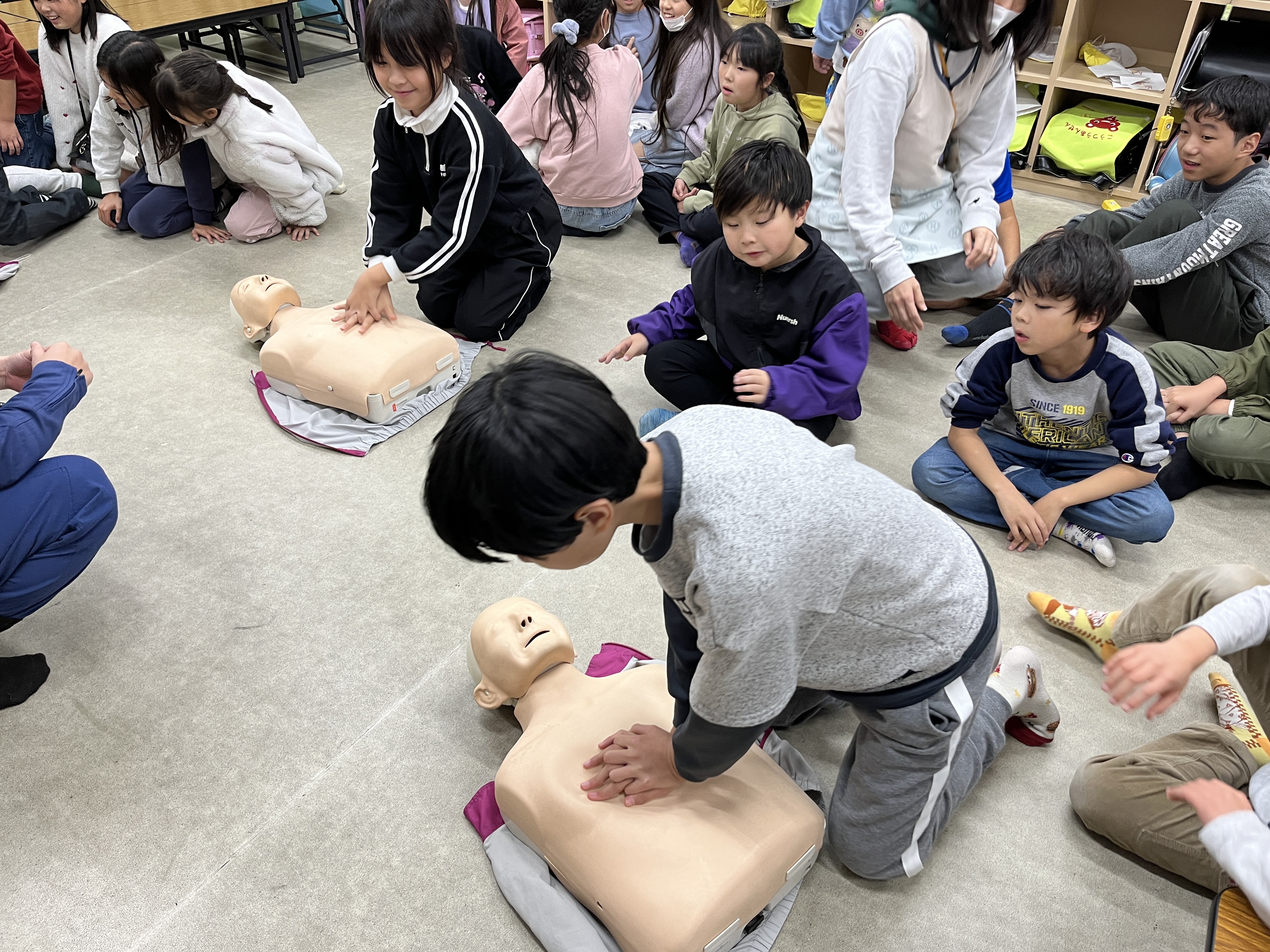 今月も工作やまなぶ君等の行事の他、消防署の方が来られての防災訓練では、地震時の身の守り方、消火器の使い方や心臓マッサージの仕方のお話をしていただき、みんな真剣な表情で取り組んでいました。