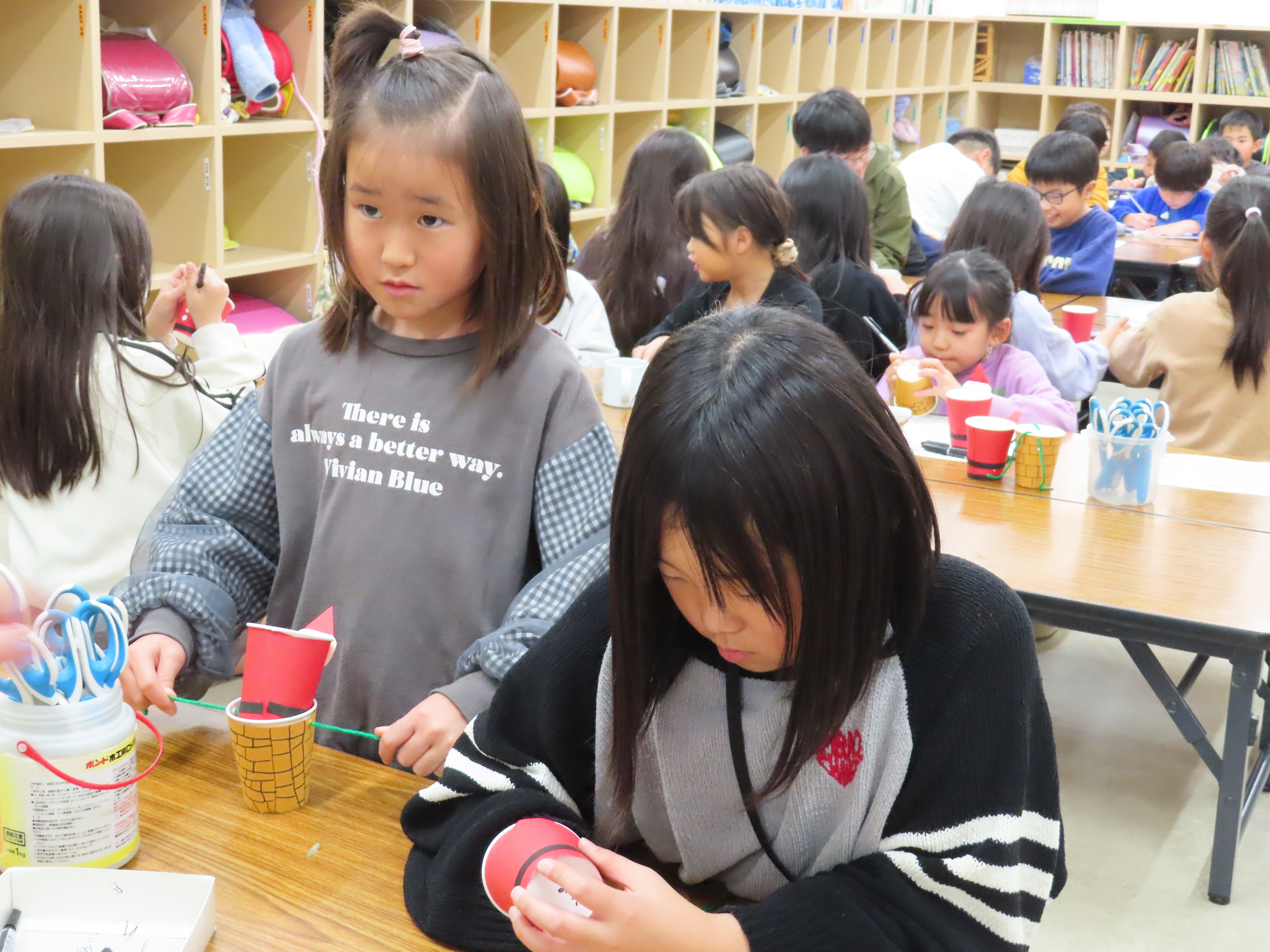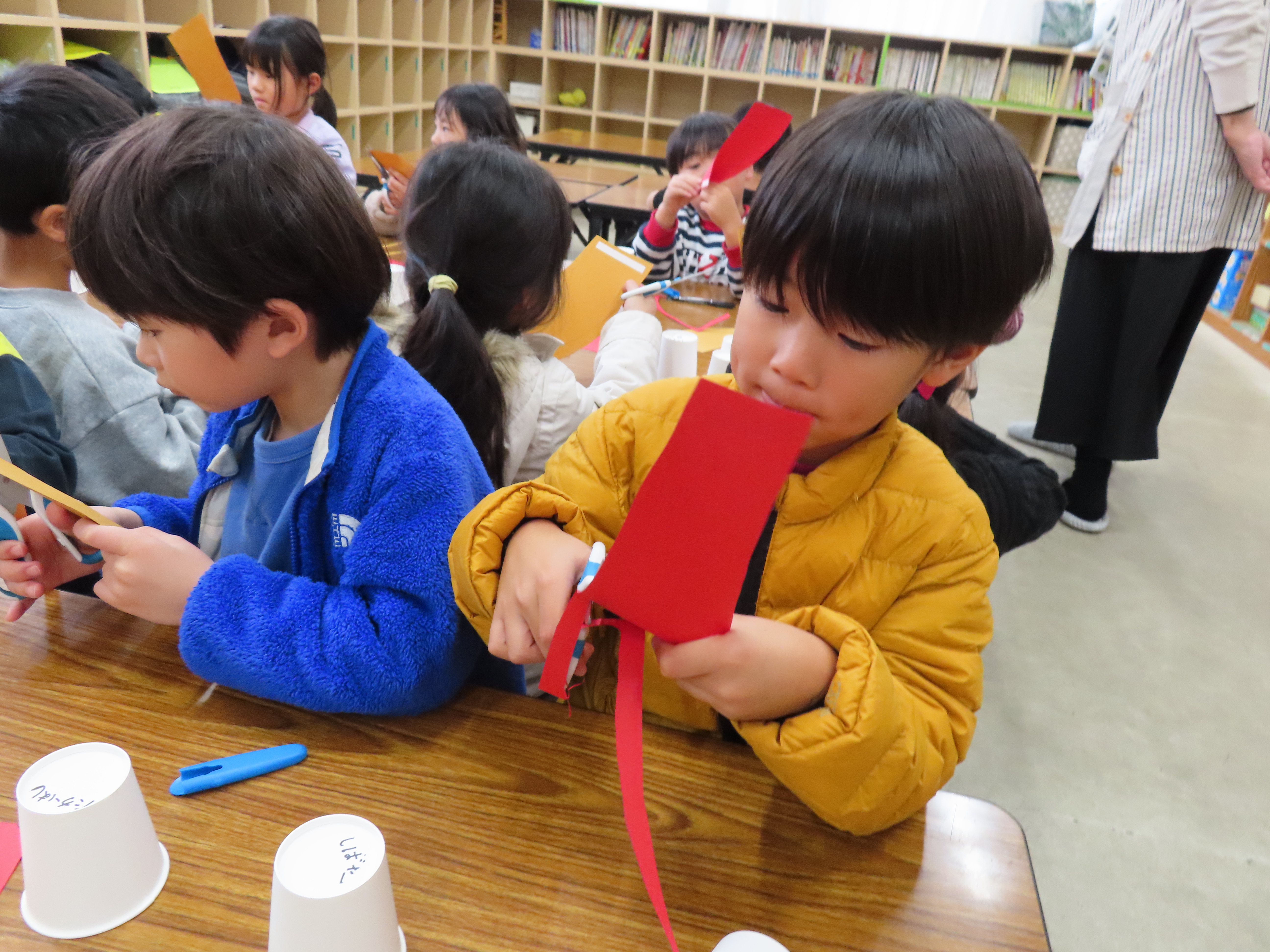 11月は、煙突からサンタさんが顔を出す仕掛けが楽しいクリスマス工作でした。